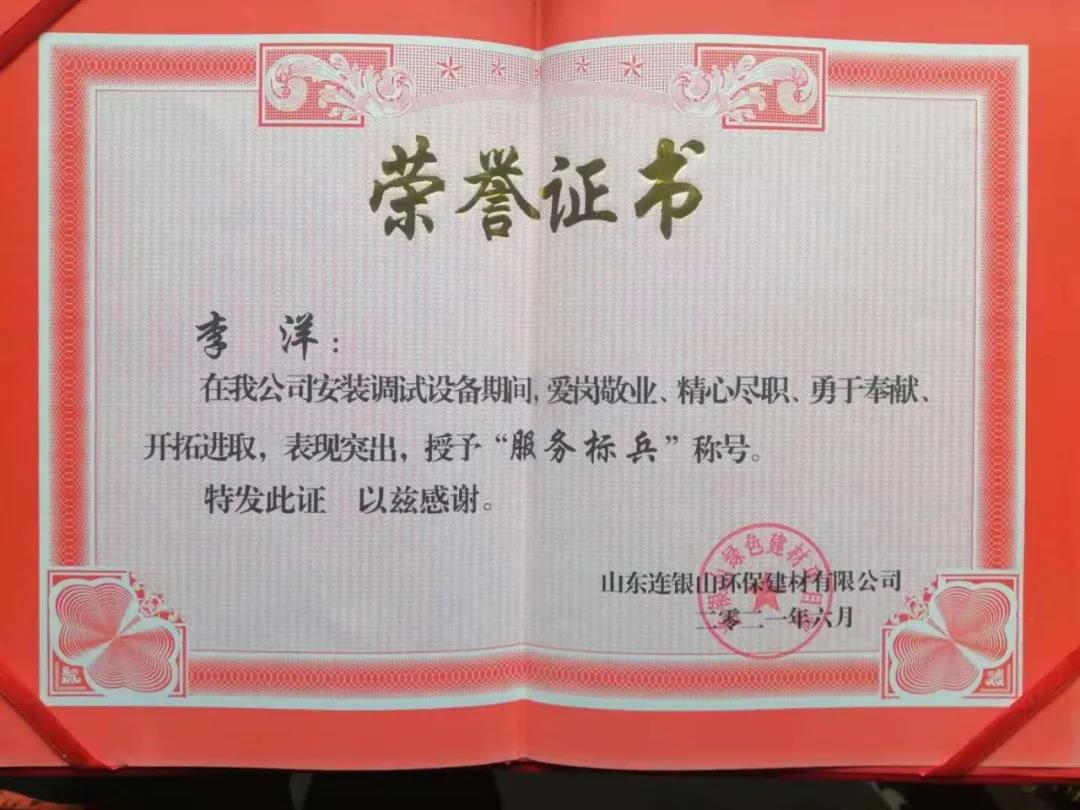 炎炎夏日,天意機(jī)械在向客戶山東連銀山環(huán)保建材有限公司售出保溫裝飾一體化板生產(chǎn)線之后,隨即派出售后團(tuán)隊對設(shè)備進(jìn)行安裝調(diào)試及售后培訓(xùn)。售后團(tuán)隊不畏酷暑,精心、耐心、專業(yè)地為客戶進(jìn)行安裝調(diào)試,贏得了客戶的好評和認(rèn)可,客戶為表達(dá)謝意,特授予天意機(jī)械售后人員榮譽證書和錦旗,以表彰售后人員愛崗敬業(yè)、精心盡職、勇于奉獻(xiàn)、開拓進(jìn)取的精神。