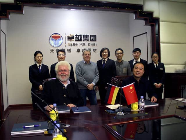 3月15日,德國外賓Dipl.lng. Bernhard Heid和Wolfang Foerster到天意機械參觀洽談合作,天意機械董事長劉洪彬,外貿(mào)部負責人董偉、李芳芳等進行了熱情接待。