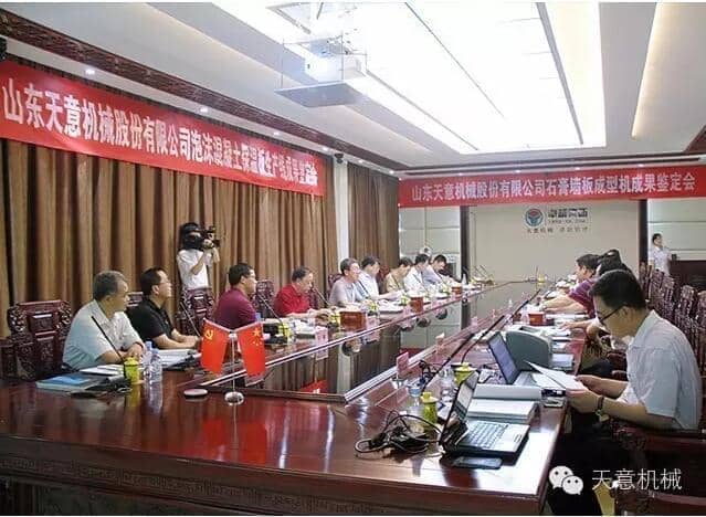 為加快產(chǎn)業(yè)結(jié)構(gòu)轉(zhuǎn)型升級,突出科技創(chuàng)新驅(qū)動企業(yè)發(fā)展,7月23日,由山東省機(jī)械工業(yè)協(xié)會處長李玉奎帶隊一行領(lǐng)導(dǎo)專家,蒞臨天意機(jī)械組織召開 "泡沫混凝土保溫板生產(chǎn)線” 和 “石膏墻板成型機(jī)” 科技成果鑒定會。濟(jì)寧市兗州區(qū)副區(qū)長周詠輝,集團(tuán)董事長劉洪彬、技術(shù)總監(jiān)陳維國等領(lǐng)導(dǎo)出席了本次會議。